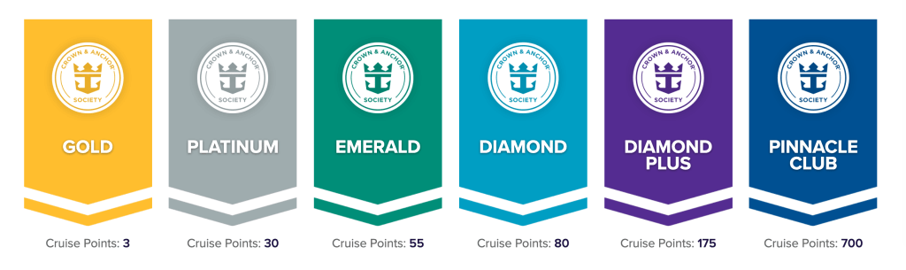 Royal Caribbean’s rewards program, the Crown and Anchor Society, is divided into six tiers- Gold, Platinum, Emerald, Diamond, Diamond Plus, and Pinnacle Club. Like Carnival Cruise Line’s loyalty program, guests earn one point every night they spend on a cruise, but you can also earn an additional point for each night spent in a suite (the suite cannot come from a room upgrade). Also, like the VIFP Club, Members of the Crown and Anchor Society can match their status with Royal Caribbean’s sister brand Celebrity Cruises.