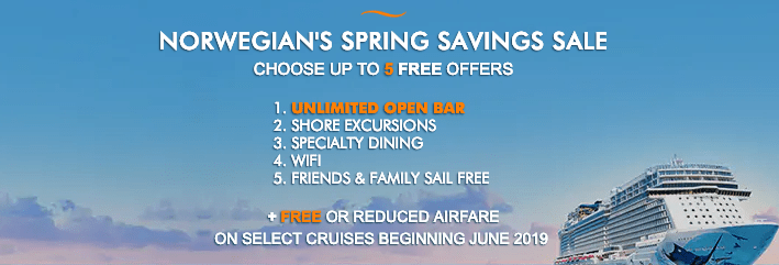 Norwegian Cruise Line is one of the most trusted names in cruising and their combination of new ships and awesome itineraries makes for one great vacation the whole family will enjoy. What makes this sale great is it lets you choose which perks you want to include. Free offers include an unlimited open bar, free shore excursions, specialty dining upgrades, free wifi on board, add additional cruisers for free and even free or reduced airfare to and from the ship! The total value of all the savings could reach $4,000 if you opt for it all.