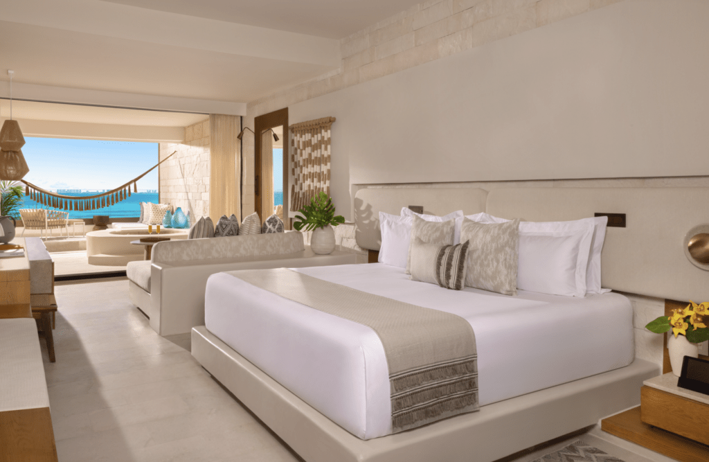 Leveraging the lofty hillside location, five tiered infinity pools cascade toward the turquoise Caribbean. The ambience feels curated for calm rather than spectacle. The resort features 125 ultra-luxury suites designed as sanctuaries, many with a balcony or terrace and a Mayan hot tub. Suites include wine refrigerators stocked to your preference, complimentary minibar selections, and 24 hour in-suite dining.
