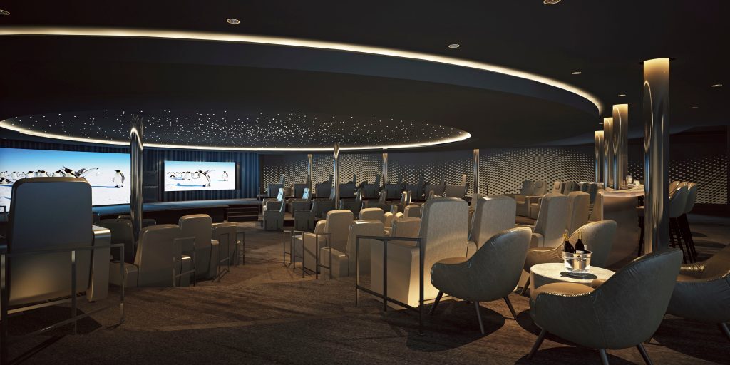 Passengers looking to relax in a quieter spot can head up to the Observatory and Library, which features floor-to-ceiling windows, allowing in bright natural light. (Keep alert for any marine creatures that might show up just off the bow.) Here, you can borrow a book or work on a word puzzle while sipping coffee or one of more than a dozen tea varieties.