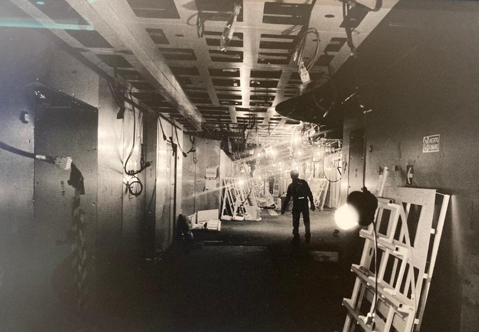 “This is where we’re standing right now,” said Blake as he directed my attention to a grainy black-and-white image of a maddening riot of panels, wires, and lights pierced by rays of sunlight, a lone construction worker surveying the scene. I could barely believe that that chaos ultimately became the ship’s stunning art gallery where we stood, its curved, textured walls and arced lighting hovering above gleaming parquet flooring.