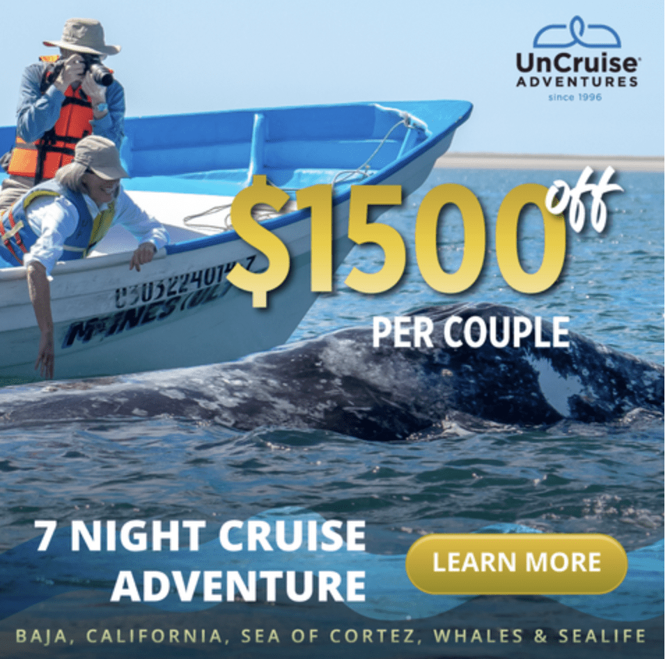 UnCruise Adventures presents exclusive limited-time deals for Baja California, Mexico cruises, with potential savings of $550 to $1,190 per person. Some of the offers include: